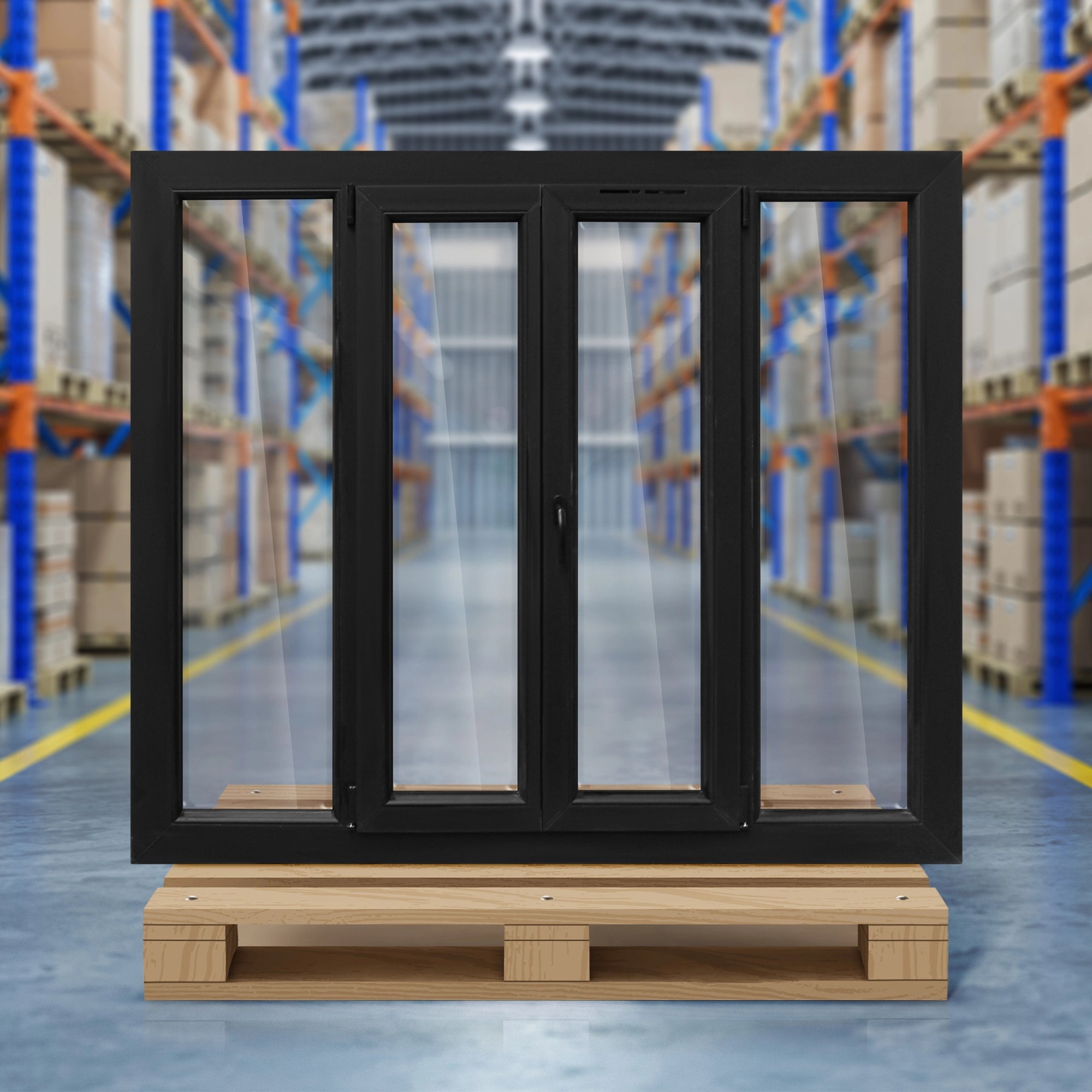 Informations sur le produit "[Déstockage] fenêtre PVC 2 vantaux + 2 fixes - oscillo-battant H125X177L cm - couleur noire"