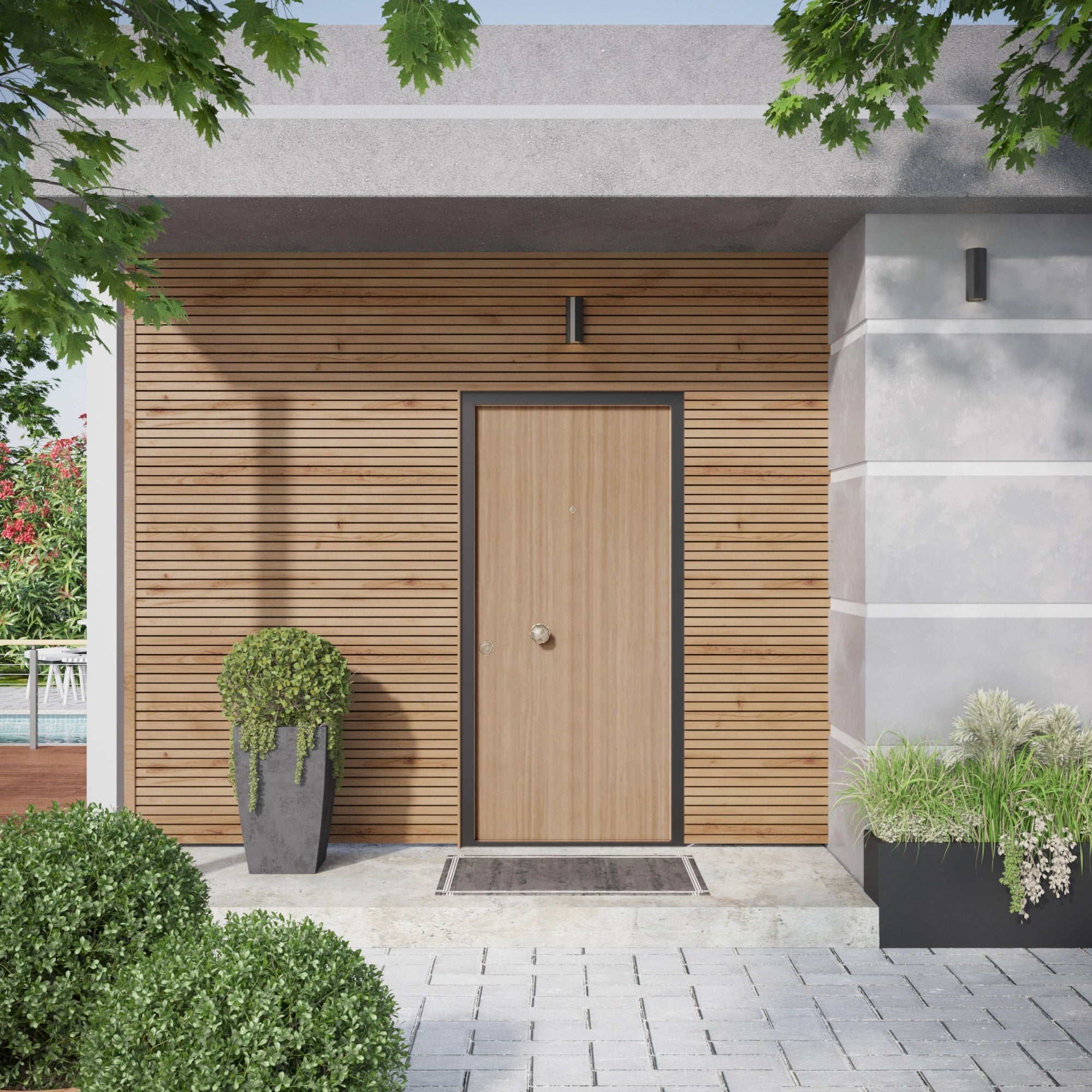 Porte blindée bloc-porte Acier et Hydrofuge haute sécurité 3 points ou 14 points - Pour appartement / maison - Peuplier