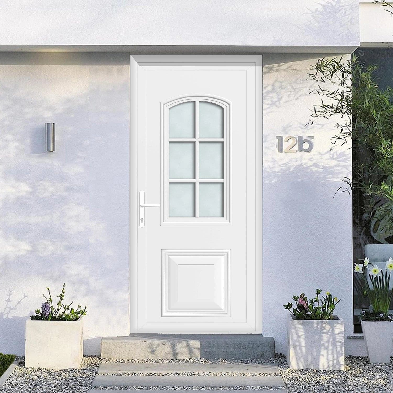 Porte d'entrée PVC vitrée sur-mesure - 6 carreaux vitrage mandalin - 3 coloris disponibles : Blanc/Gris anthracite/Chêne doré - vitrage Mandalin