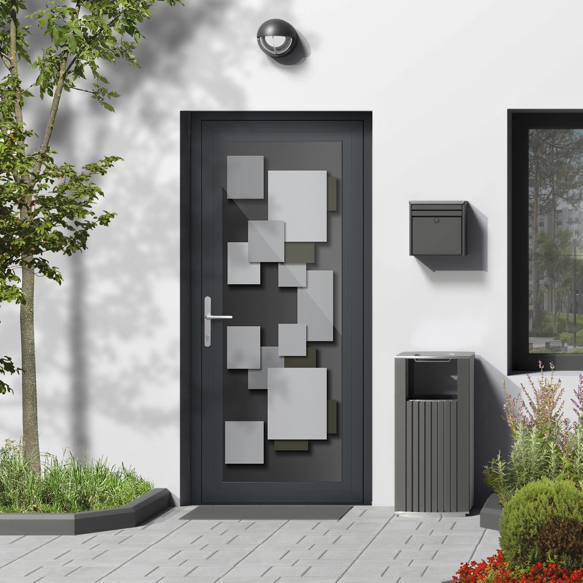 Porte d'entrée vitrée sur-mesure en aluminium - Un grand vitrage pleine porte impression 3D - Blanc / Noir / Inox naturel / Gris anthracite
