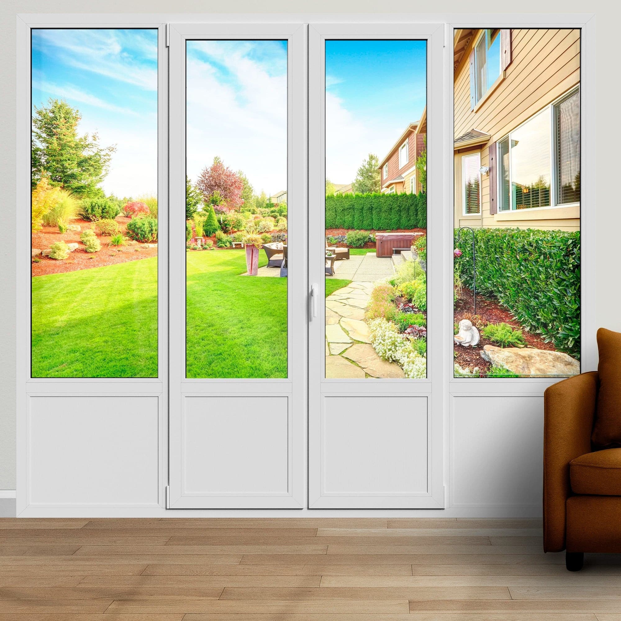Porte fenêtre PVC sur-mesure 2 vantaux + 2 fixes - oscillo-battant